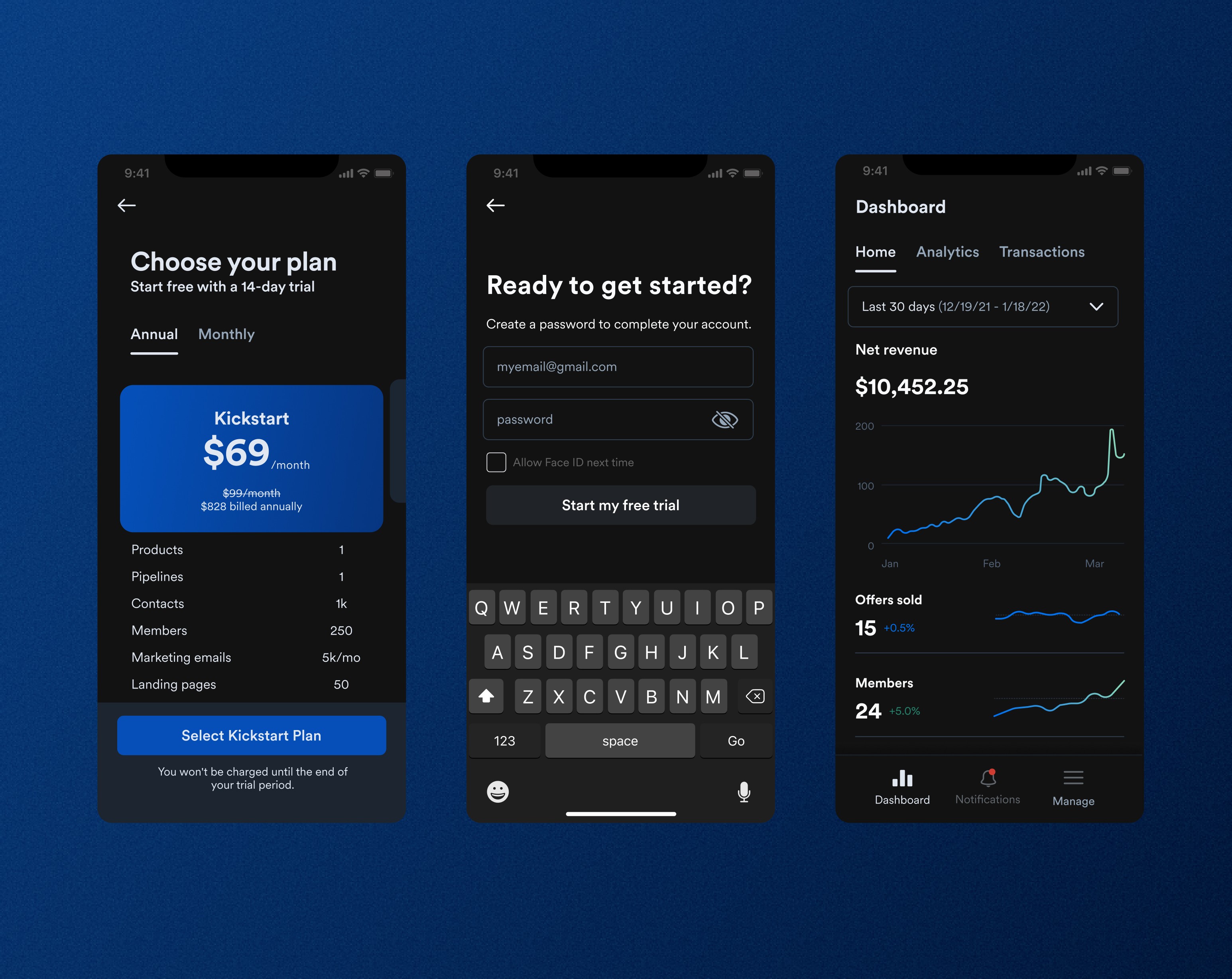 Selection of dark mode screens