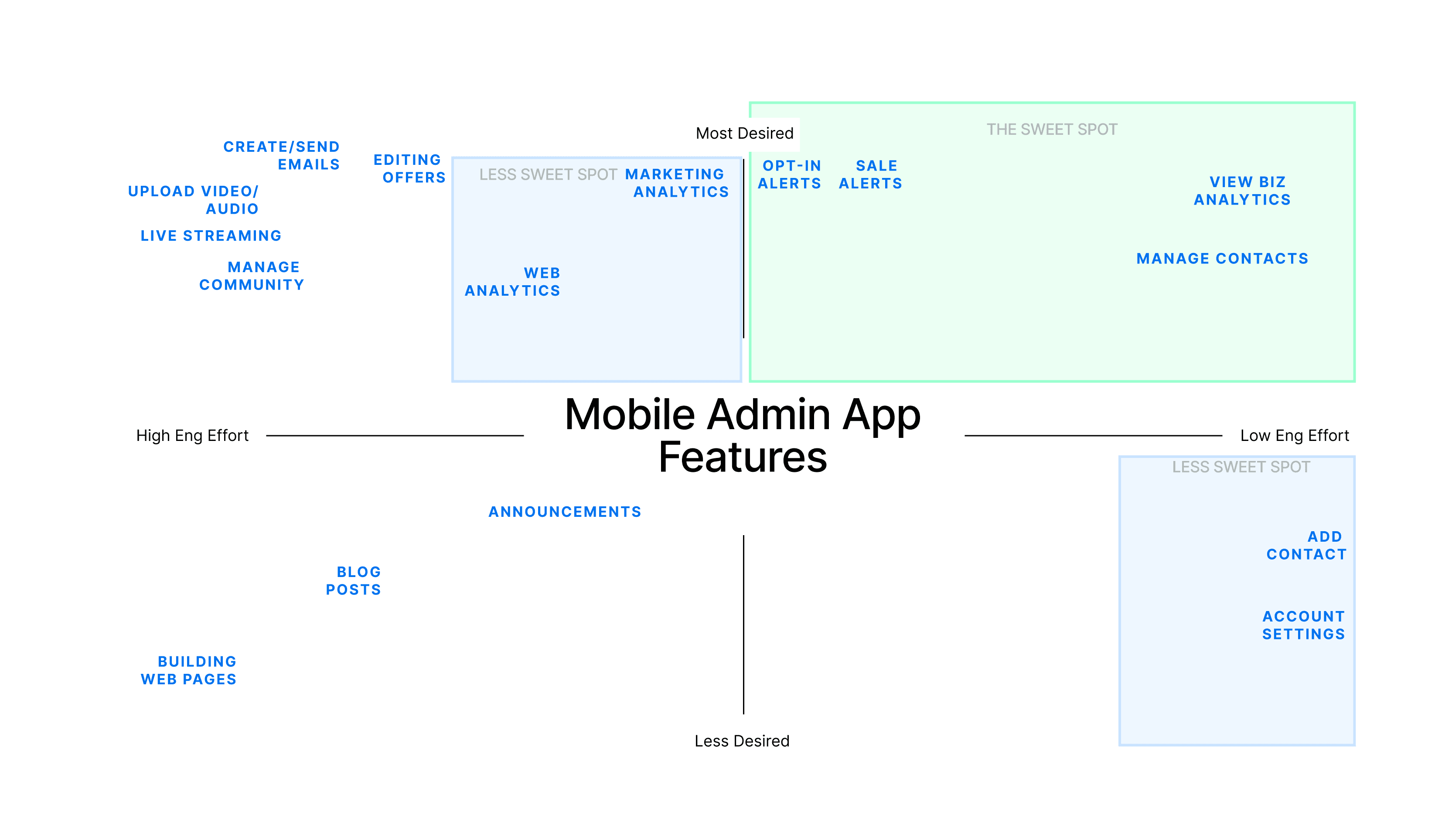 Features in the MOST DESIRED v. LOW ENG EFFORT are of course no-brainers.